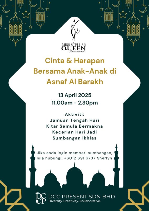 22 Apr Event Love and Hope: A Heartfelt Celebration with the Children of Asnaf Al Barakh April 22, 2025 By Rubilogy_Technology_Support@Admin_5393 On 13 April 2025, Miss Stellar Queen International, with the support of DCC Present Sdn Bhd, hosted a meaningful CSR initiative titled ... Continue reading